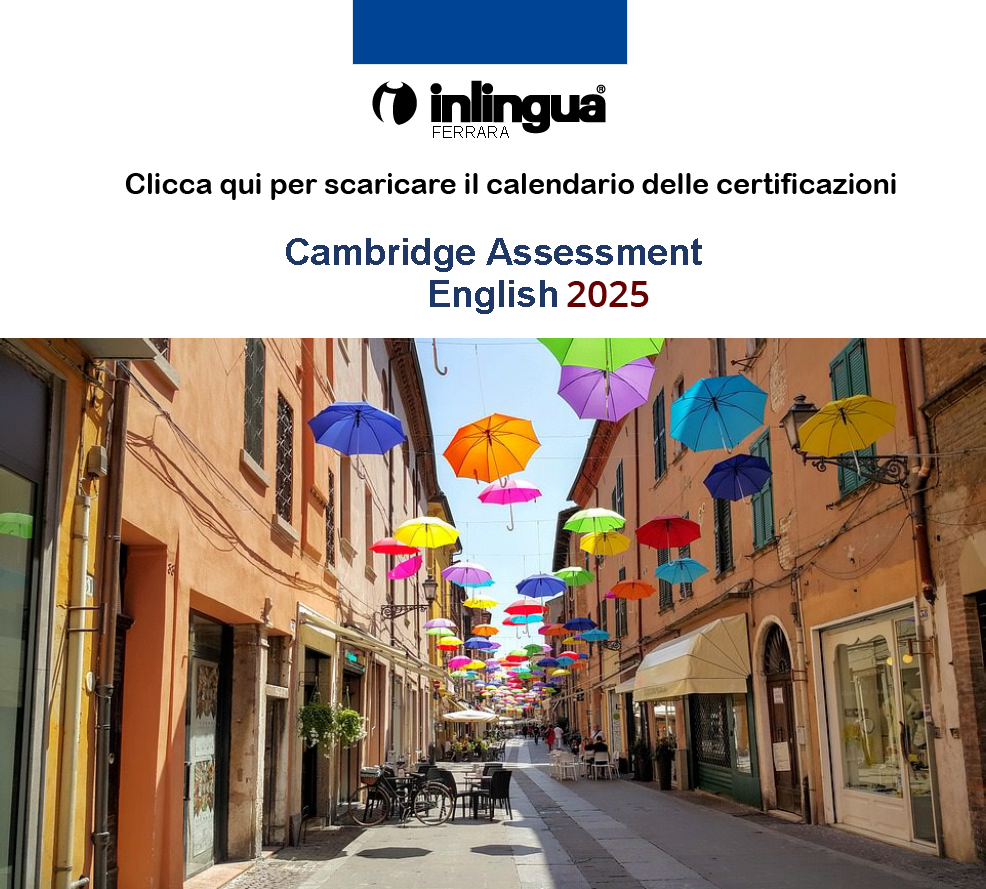 inlingua Ferrara è centro autorizzato di preparazione e di erogazione esami COMPUTER BASED finalizzati al conseguimento delle Certificazioni Cambridge Assessment riconosciute dal Consiglio d’Europa.